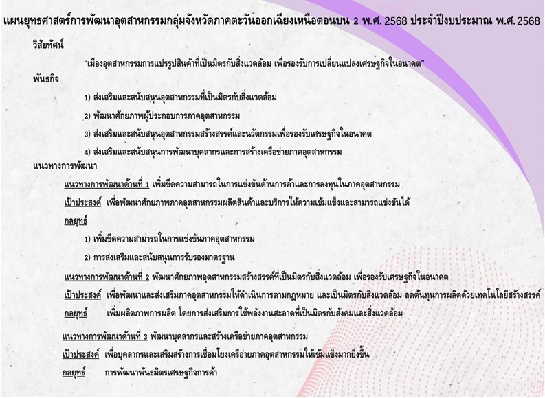 แผนปฏิบัติการด้านการพัฒนาอุตสาหกรรมกลุ่มจังหวัดภาคตะวันออกเฉียงเหนือตอนบน 2 รายปี 2568 ประจำปีงบประมาณ พ.ศ. 2568