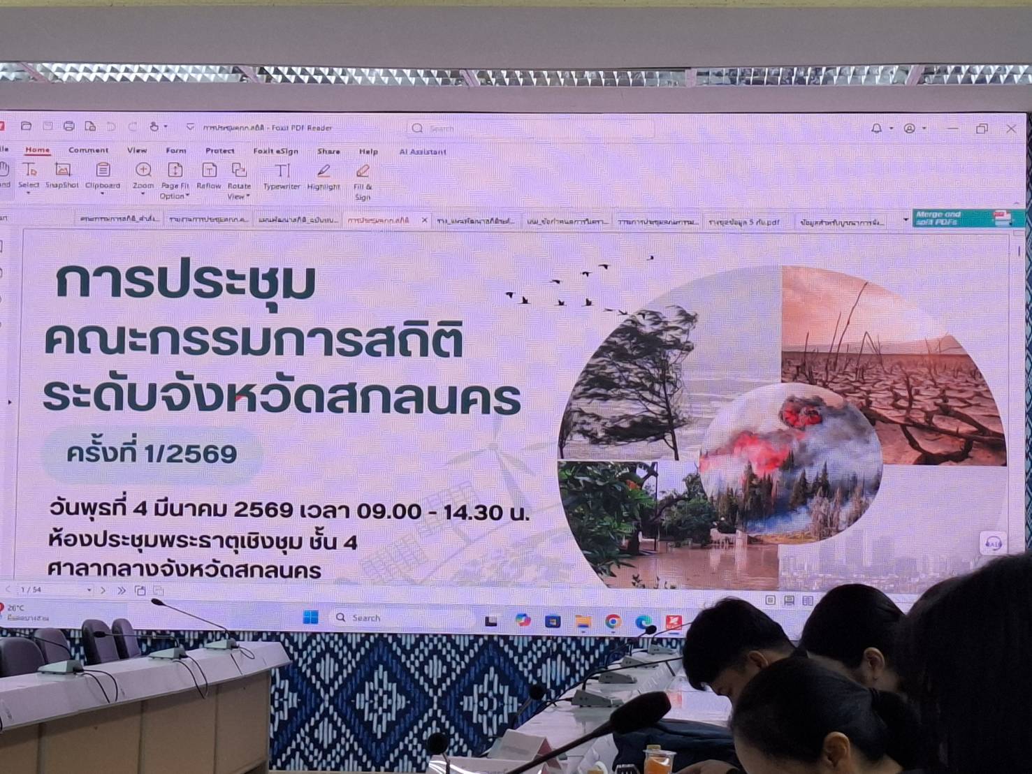 วันพุธที่ 4 มีนาคม 2569 เวลา 09.00 น. นายชาญชัย อนุสรณ์ อุตสาหกรรมจังหวัดสกลนคร มอบหมายให้ นางอำไพ สงวนเครือ หัวหน้ากลุ่มนโยบายและแผนงาน เข้าร่วมประชุมคณะกรรมการสถิติจังหวัดสกลนคร ครั้งที่ 1/2569 ณ ห้องพระธาตุเชิงชุม ชั้น 4 ศาลากลางจังหวัดสกลนคร (หลังใหม่) โดยมี นายปริญ นิทัศน์เอก รองผู้ว่าราชการจังหวัดสกลนคร เป็นประธานการประชุมฯ